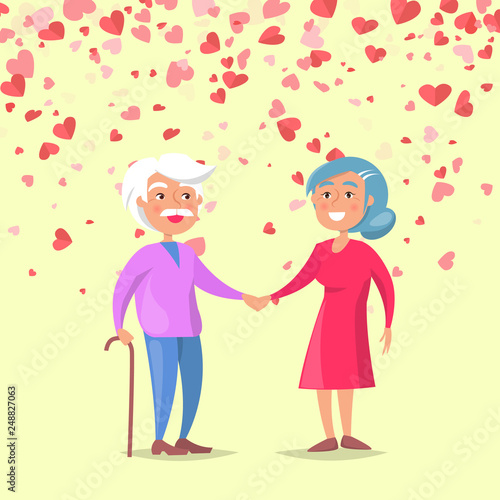 Old Couple Are Happy Senior Celebrate Valentine Day Greeting