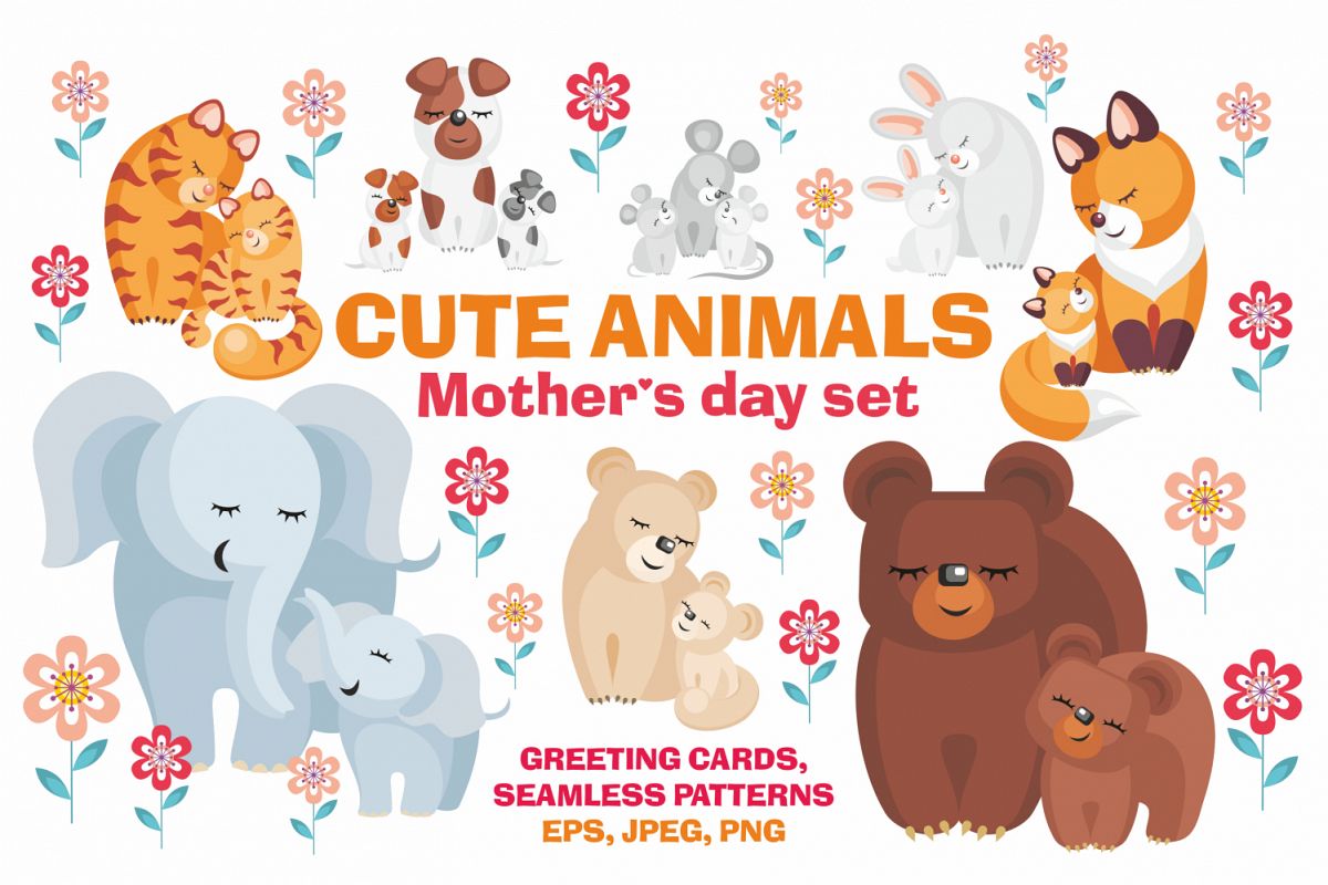 High-Quality Animal Mothers Day Cards Photo Illustration