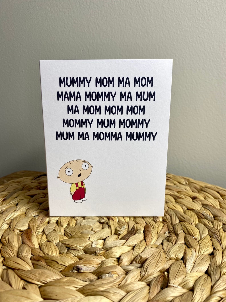 - A2: While widely loved, Stewie's humor can be a bit edgy. Consider your mom's sense of humor. If she enjoys Family Guy and appreciates sarcastic or dark humor, it's likely a perfect fit. If she prefers very traditional greetings, you might want to consider other options.