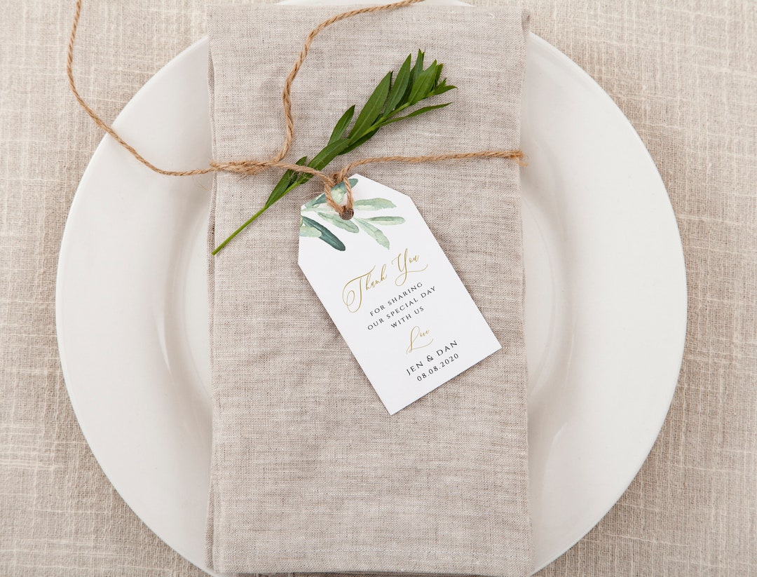 - While tags usually include the couple's names and the date, they typically do not include the individual guest's name. If you want to personalize the favor for each guest, the tag can sometimes double as a place card, serving two functions in one.
