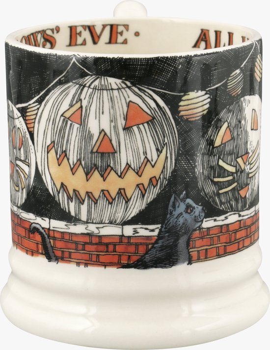 - Emma Bridgewater typically features classic Halloween and autumnal motifs such as pumpkins, friendly ghosts, spiders, witches' hats, and sometimes black cats. The designs maintain the brand's signature hand-sponged, charming aesthetic.