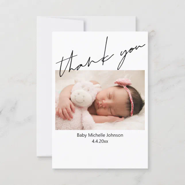- Absolutely! Including a photo of your newborn is a very popular and cherished addition to thank you cards. Many card services offer designs where you can easily incorporate a picture.