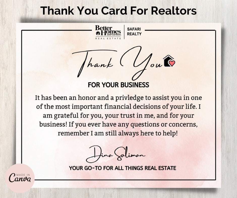 Imagine being a client in a significant transaction like buying or selling a home. It's a huge decision! A personalized thank you card acknowledges their trust and investment in you. It elevates your service from transactional to truly personal, making clients feel valued and remembered.