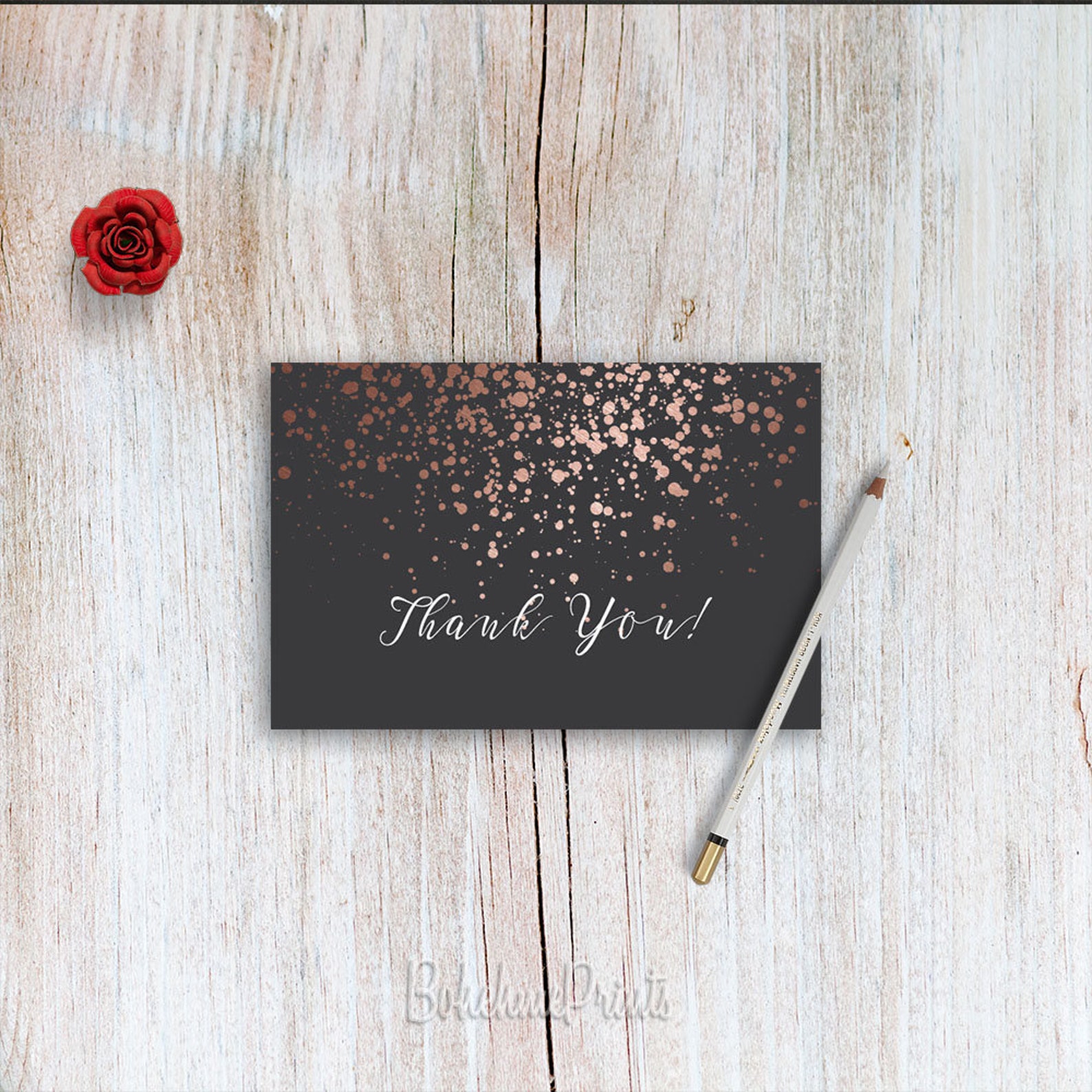 Vivid Rose Gold Thank You Cards Photo in HD