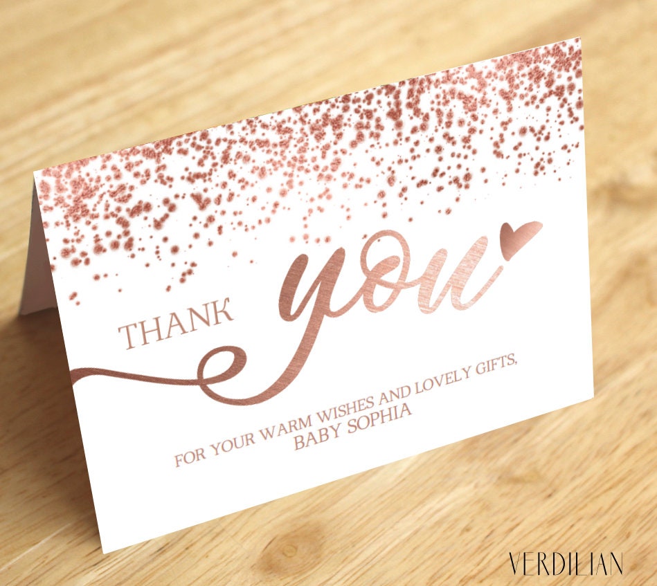 - Rose gold thank you cards are incredibly versatile! They are perfect for weddings, bridal showers, baby showers, engagements, birthdays, anniversaries, corporate events, or even just general thank you notes for kindness received.