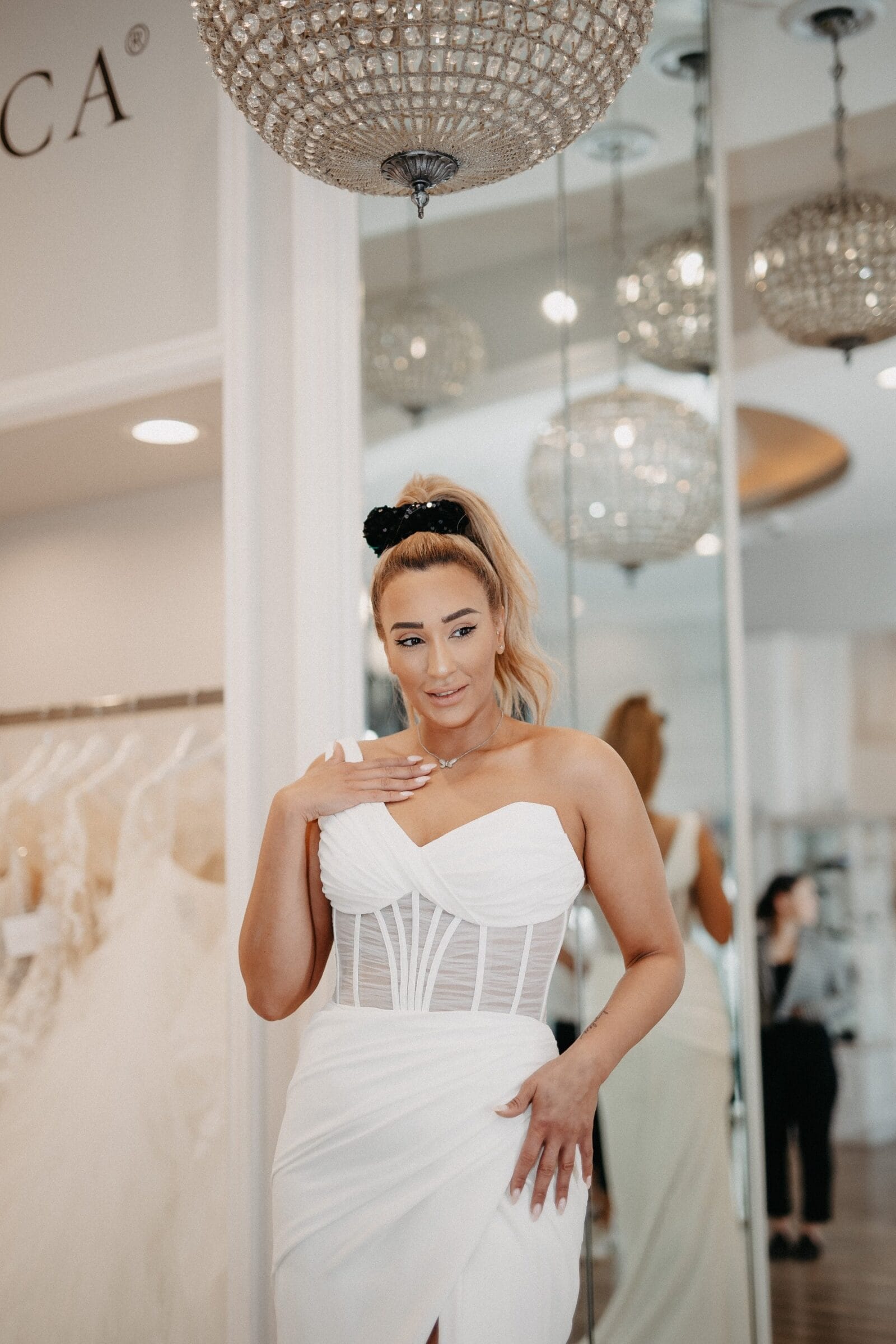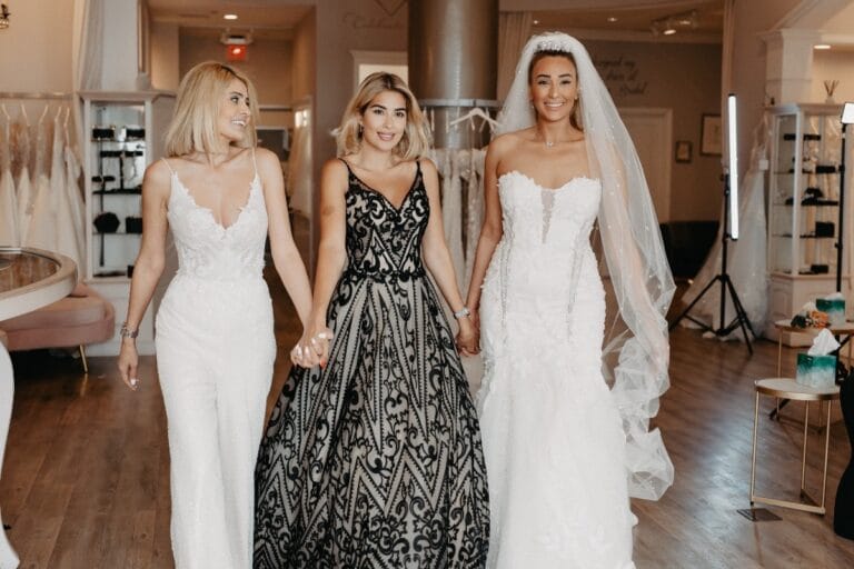 - While you might want to share the moment with everyone, most OC boutiques suggest limiting your group to 2–4 trusted guests. Large groups can lead to too many conflicting opinions, making the decision process harder for the bride.