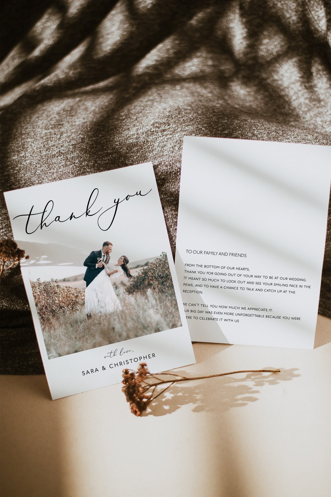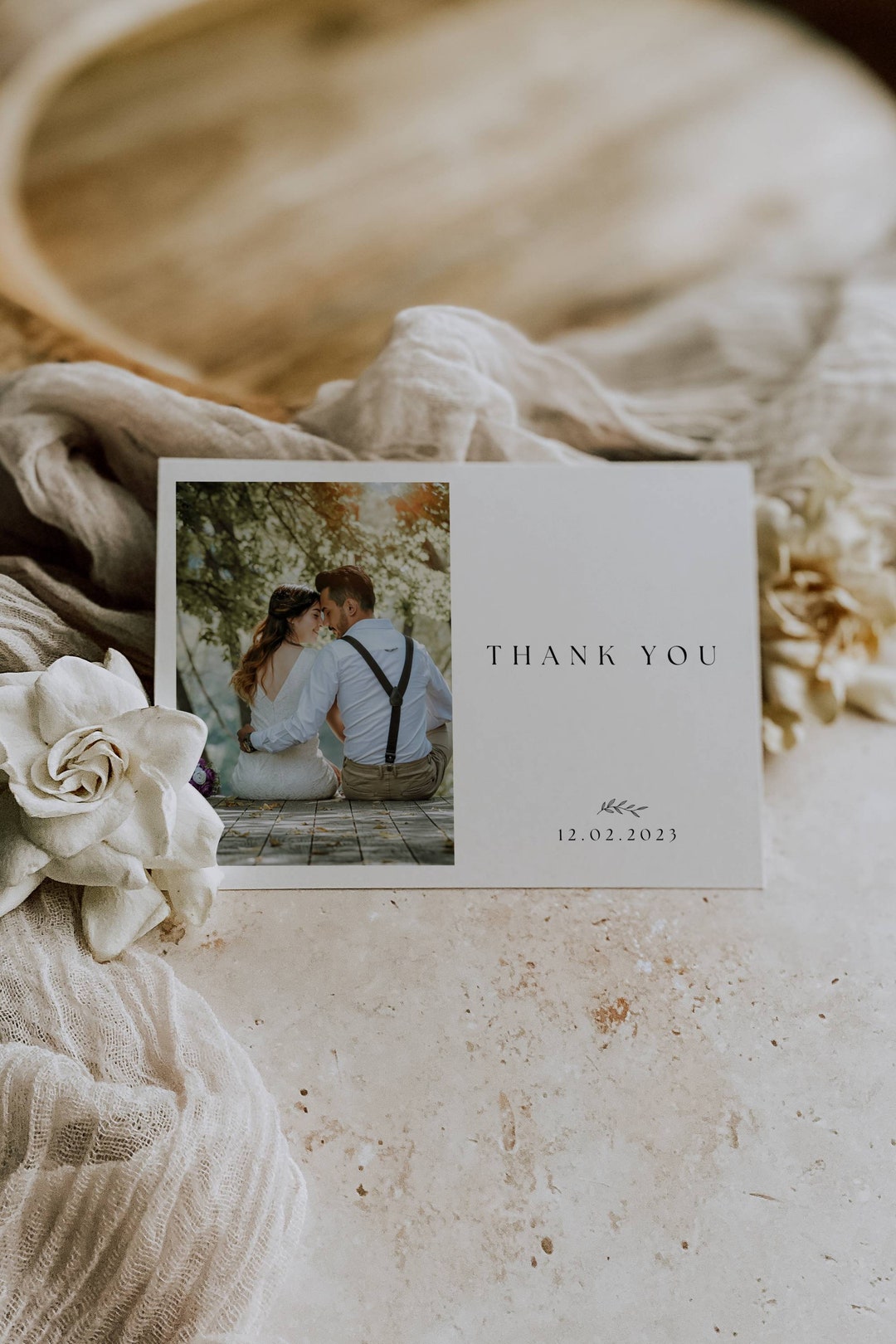 Immerse yourself in the stunning details of this beautiful wedding thank you cards with photo wallpaper, designed for a captivating visual experience.