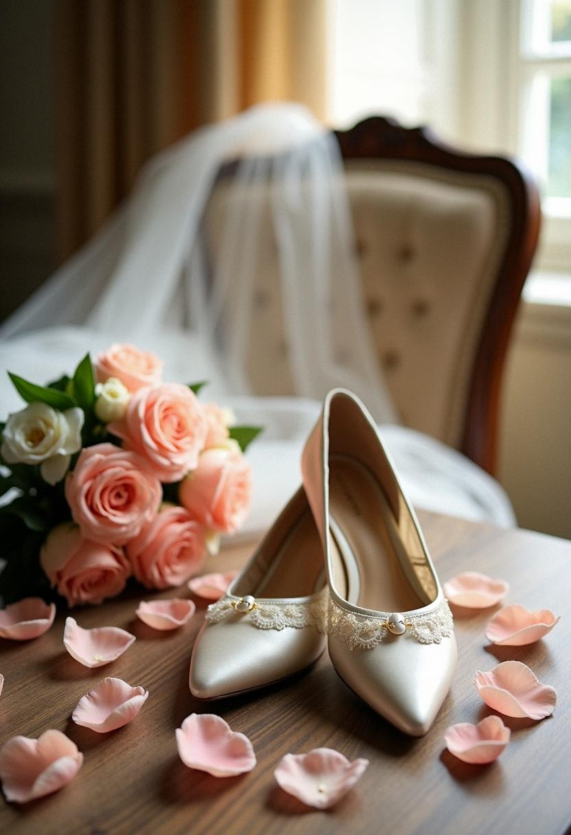 Captivating Wedding Shoes With Low Heels Scene Digital Art