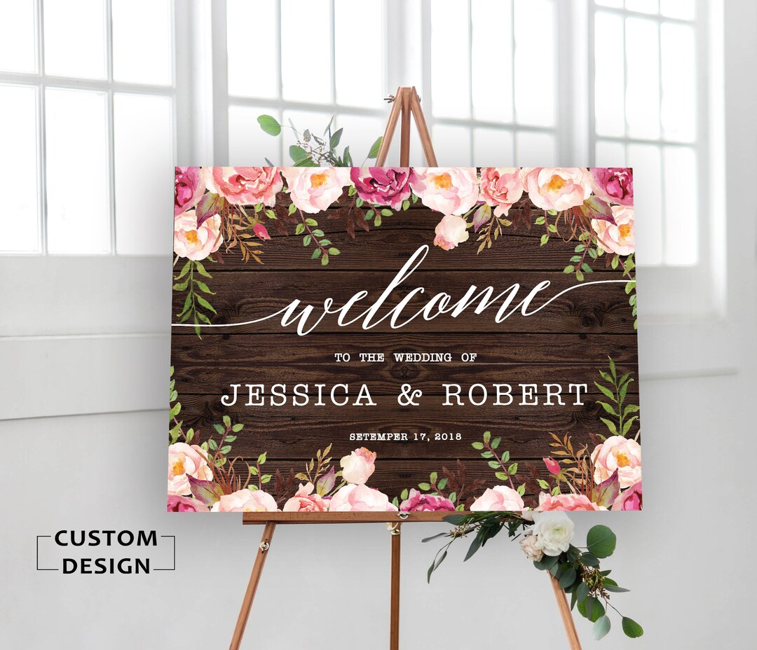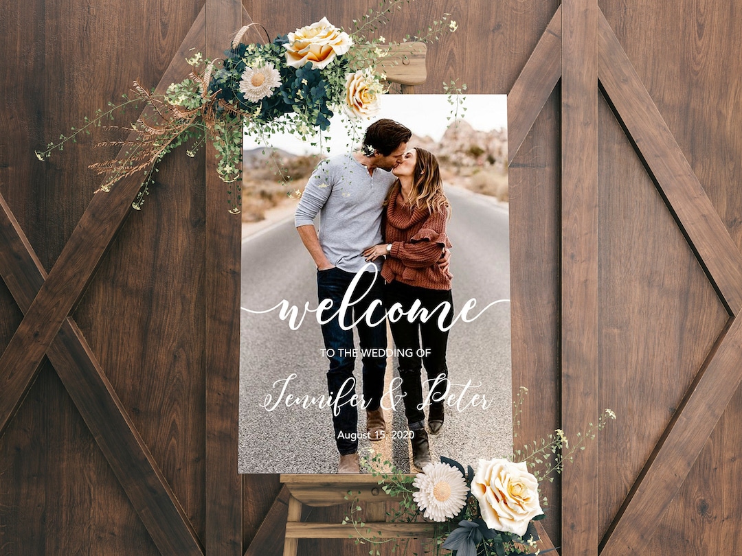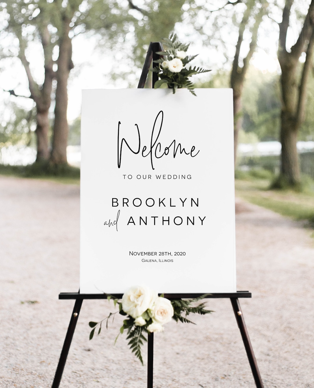Take your time selecting the perfect design, and don't forget the fun details, like surrounding the sign with flowers or candles. Your welcome sign sets the atmosphere for the entire day, so make sure it shouts, "We're so happy you're here!"