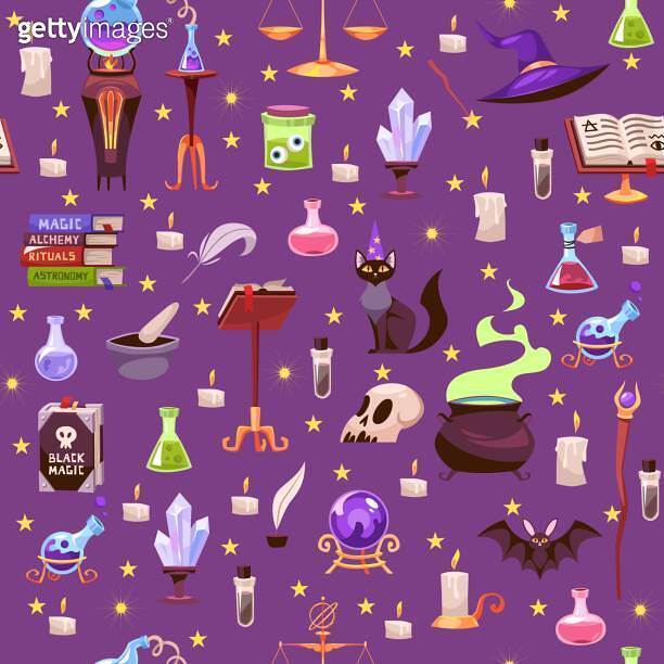- Mystical Symbols: Pentagrams, runes, crystal balls, and ancient scripts.