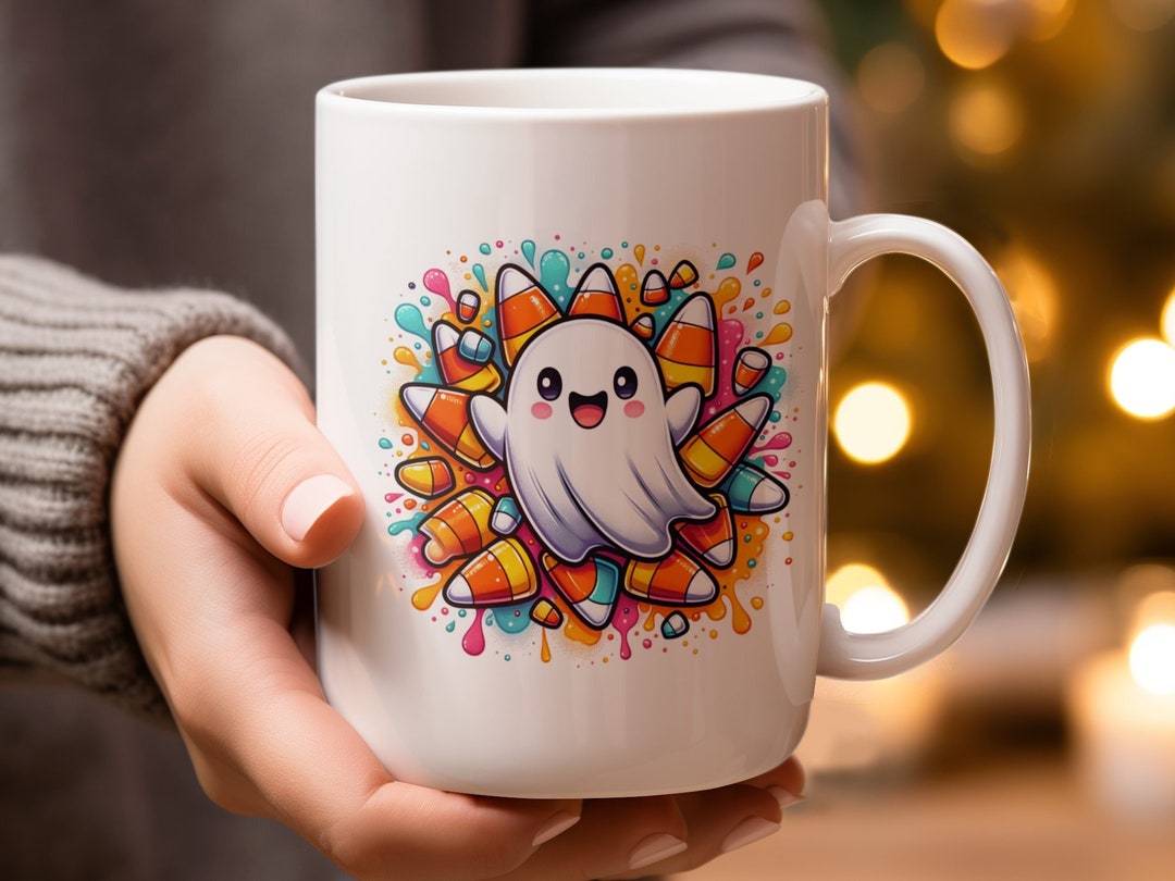 Experience the crisp clarity of this stunning ghost candy corn mug image, available in high resolution for all your screens.